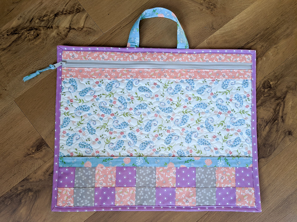 The pattern calls for Peltex 72F stiff double-sided fusible interfacing. It was my first time using this interfacing and it worked well! Between that and the fact that each side of the sleigh is doubled up and sewn together (each with a piece of Peltex 72F), it has a great structure. I was surprised when I came to the step where you need to hand sew the sides to the gusset piece. I was skeptical that it would hold together well, but in the end it did! It feels very strong.