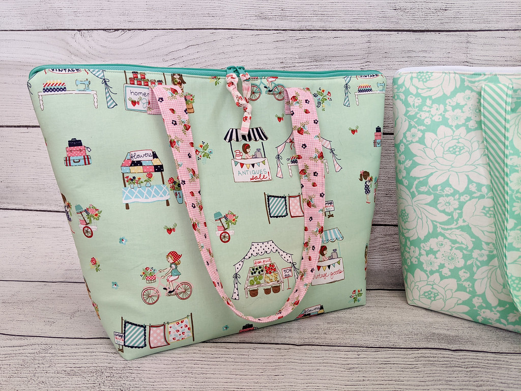Even though I already own a couple other tote patterns I haven’t sewn yet, when a local quilt shop recently offered a two-session Zoom class for making this one I couldn’t resist! Besides the motivation for making another bag, it was a chance to sew along with others and get some tips along the way. I have definitely been missing “open sewing” sessions and quilt retreats this past year.