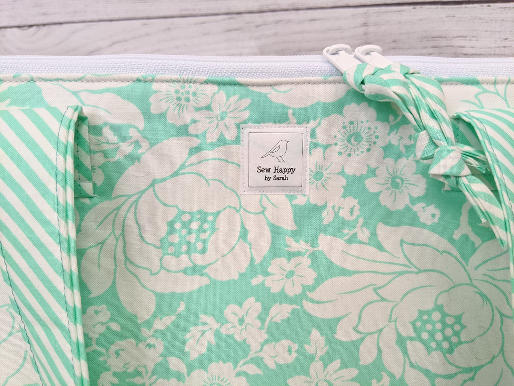 Also take note of my new “Sew Happy by Sarah” bag label! I designed it myself and printed it out on my home inkjet printer using June Tailor Colorfast White Printer Fabric. The printer fabric sheets worked perfectly and will remain colorfast because I used an iron to set the ink. I’ll definitely be adding these labels to my future makes!