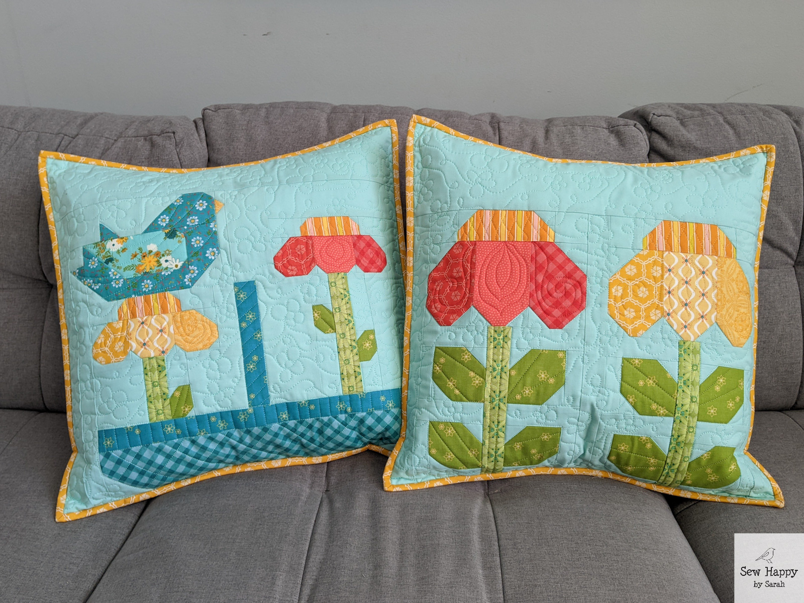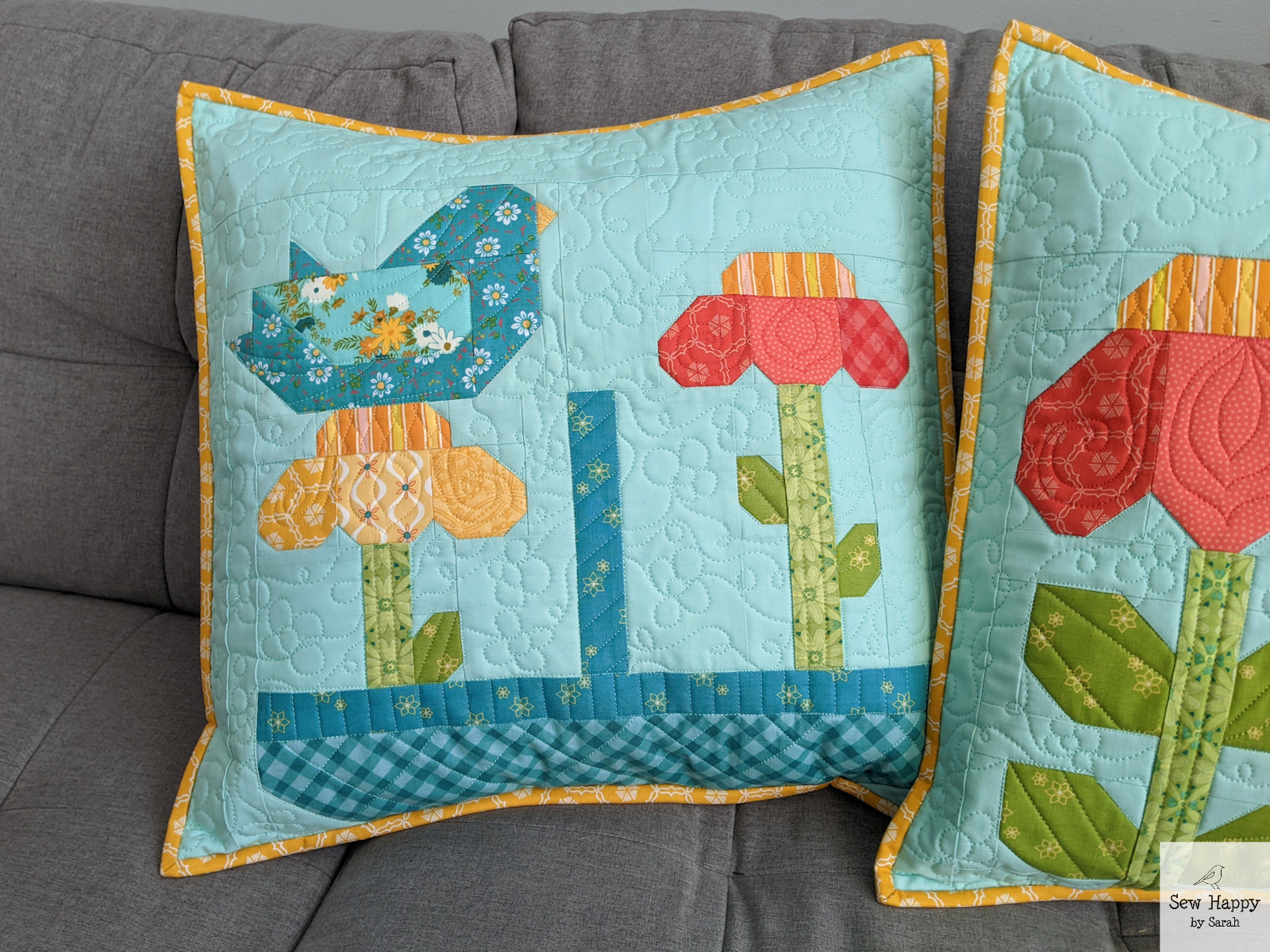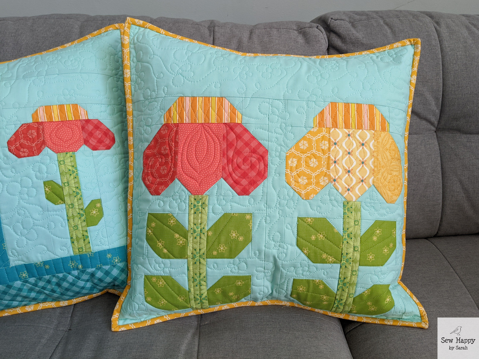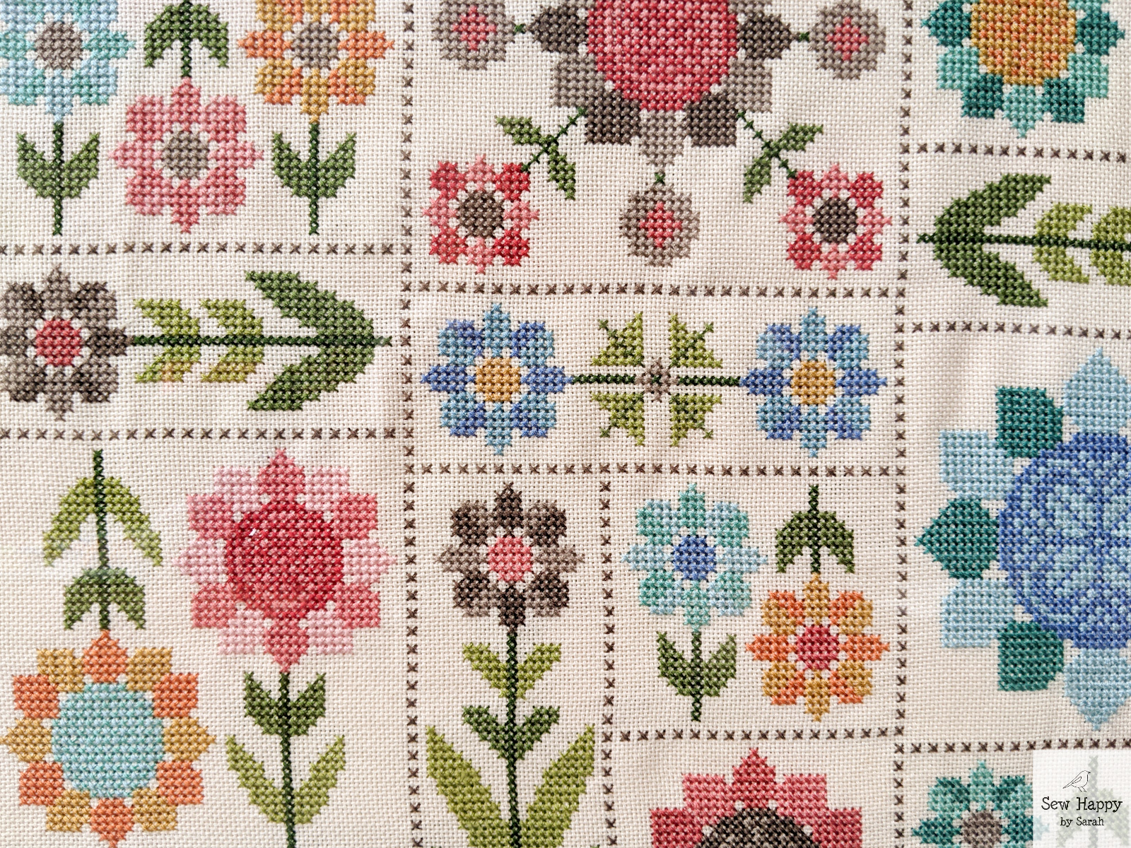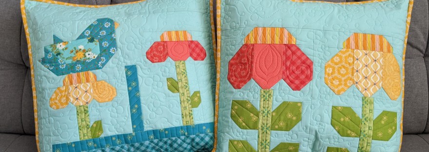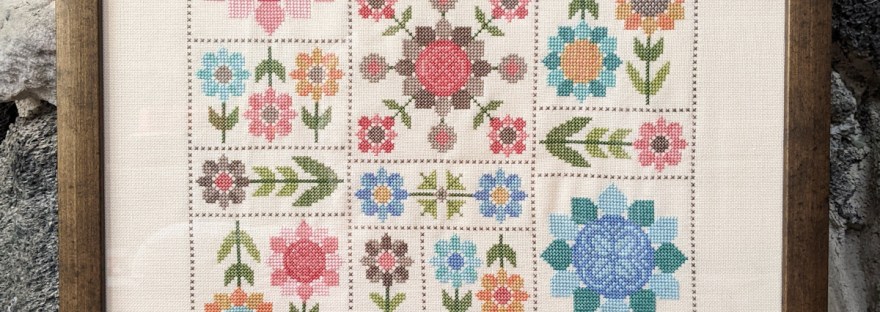 The cross-like shapes were fun to make. They were actually supposed to all be the same design, but I inadvertently changed the pattern of the light green/red blocks and didn’t see the difference until it was all assembled! Oh well — they remind me of ribbon wrapped around a gift!