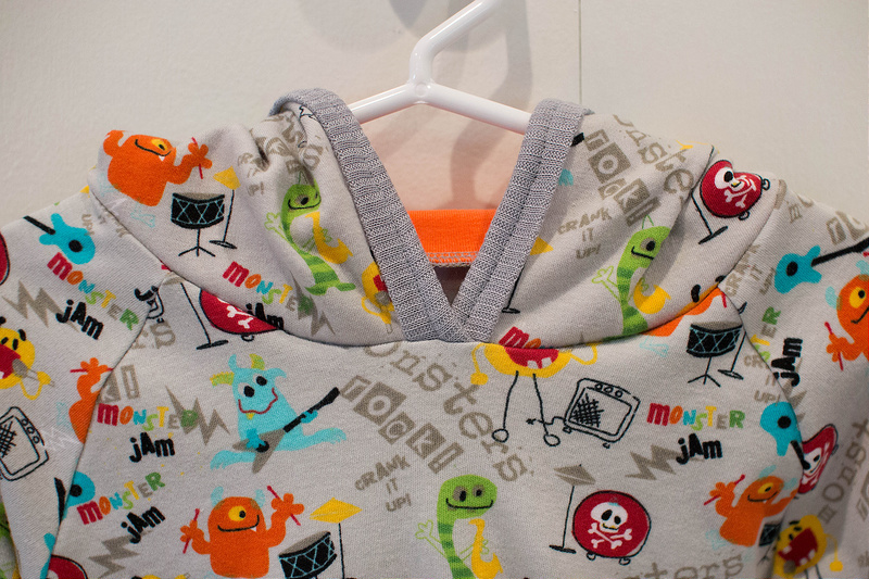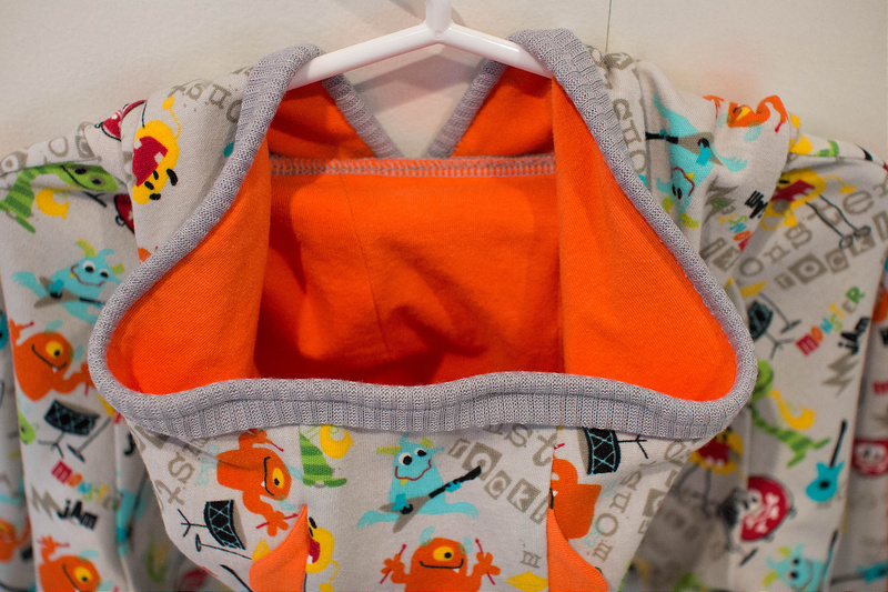 - If a stretchy knit isn’t cut carefully, it could end up misshapen. One piece of the hood lining was too large and I had to cut it to match after I had sewn one of the seams. Next time for the hood I will cut one piece at a time instead of doubling up and I will make sure all pieces are the same size before sewing!