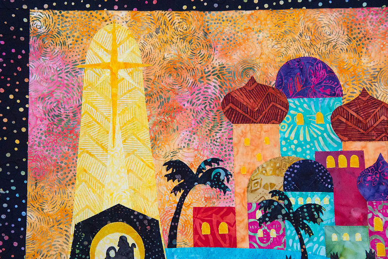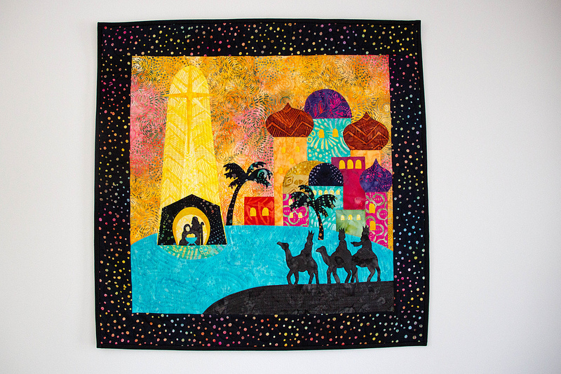 I attended the Original Sewing & Quilt Expo and came across Sew Wonderful Dreams‘ booth. I was drawn to the Bethlehem Batiks wall hanging they were featuring and bought the pattern. I had never done applique before or worked with batiks, but I was willing to learn!