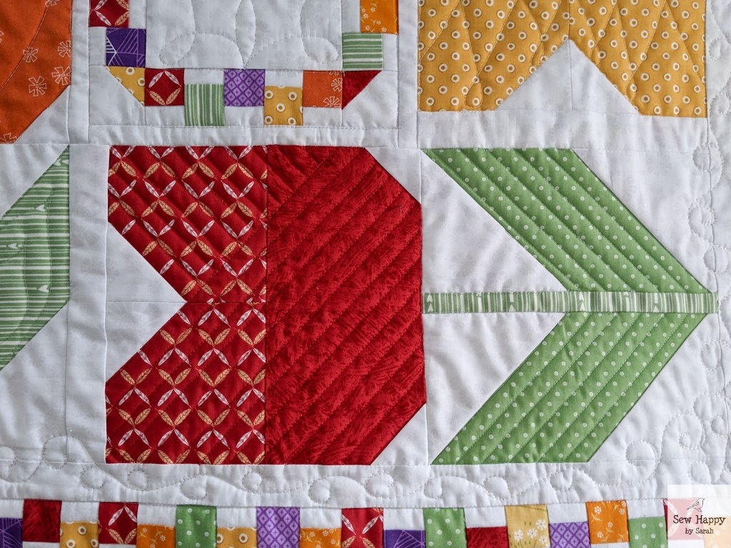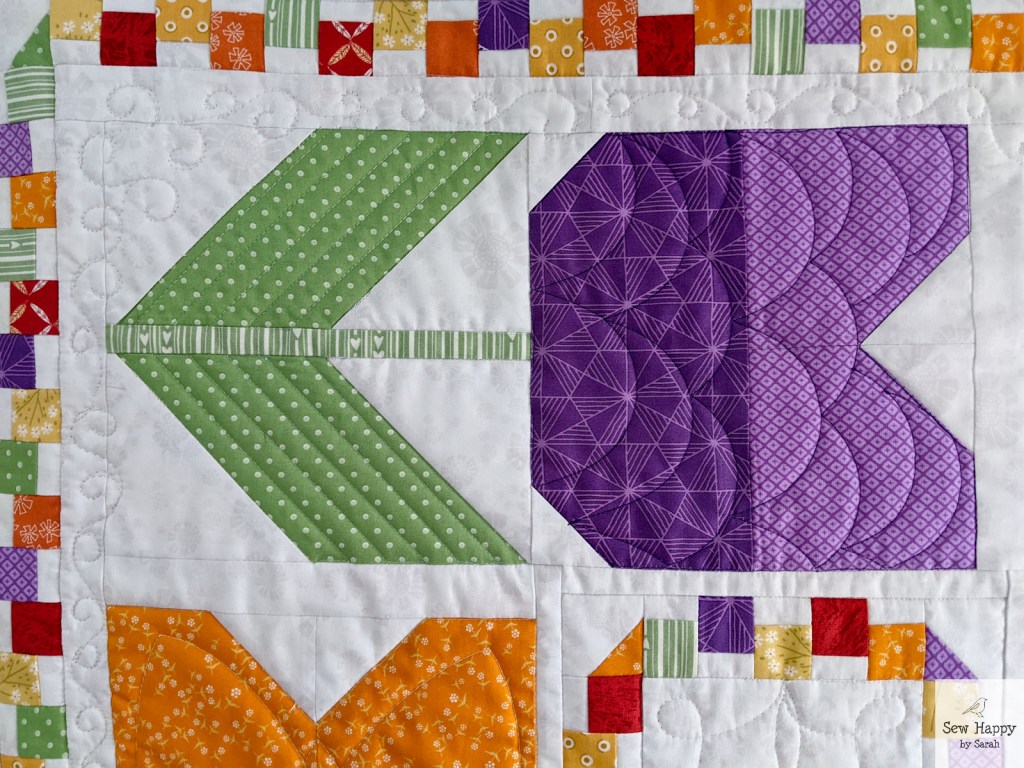 I took the opportunity to play around with the quilting, trying different designs in each flower. I used some of my rulers and a bit of freehand.
