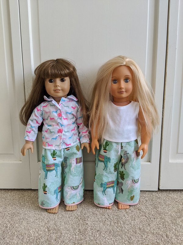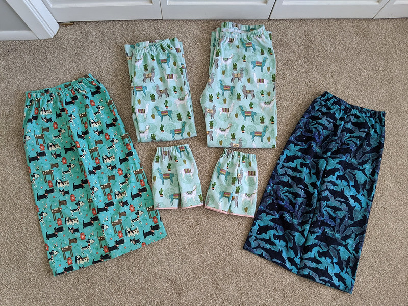 Size: Dogs and Sharks - 6, Kid Llamas - 8, Adult Llamas - Medium, Dolls - 18" size Pattern: Taylor's Pajama Pants Kids and Dolls and Taylor's Pajama Pants Adult by CKC Patterns